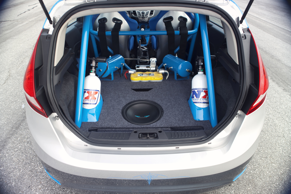 The UTI Ford Fiesta was the 2011 UTI sweep-stakes car, which debuted in the Ford booth at the 2010 SEMA Show and was later taken to more than 30 events throughout 2011. It features a custom blue/silver/grey paint job designed by Gurnade.